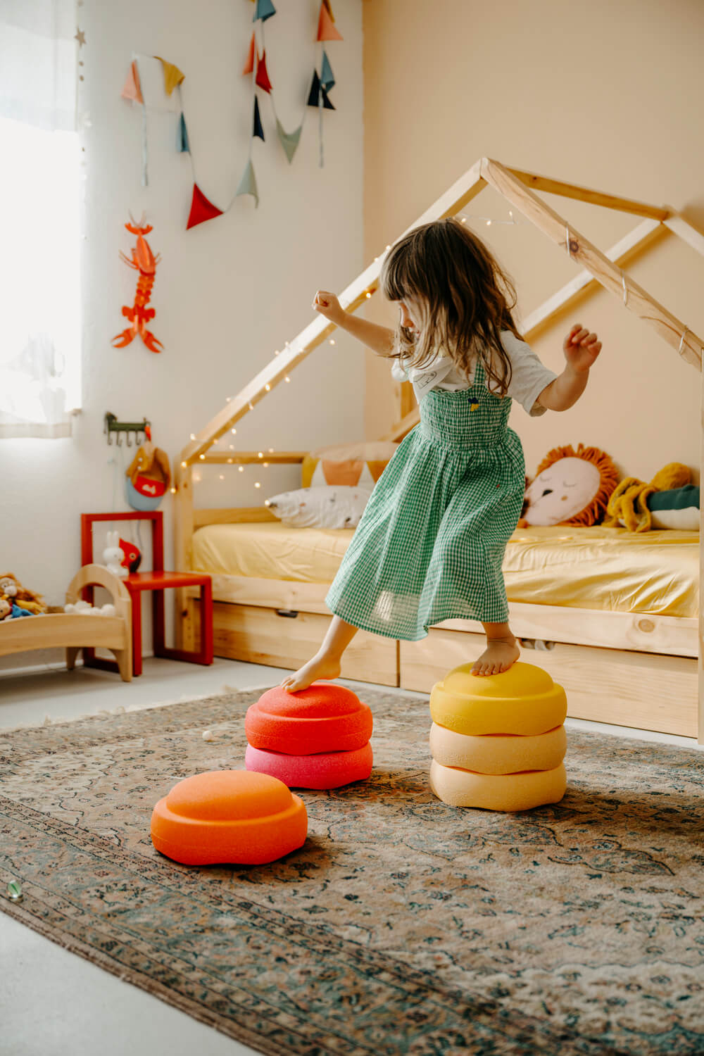 Az ajándékkártya többféle értékben elérhető, és az összes termékünkre beváltható a webshopban. Egyaránt használható online és személyes vásárlás esetén, így a megajándékozottak valóban kedvükre válogathatnak, legyen szó lépőkövekről, textilekről vagy billegő állatokról.