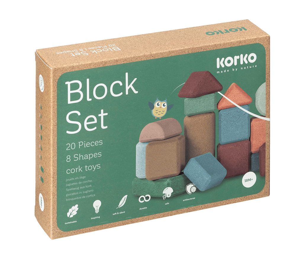 Az építőkockákkal való szórakozás remek módja a játékos tanulásnak. A parafa építőkockák megtanítják a kicsiket az ok-okozati összefüggésekre, fejlesztik a finommotorikát és szabadon szárnyalhat közben a képzelet. Természetes anyaguknak köszönhetően különösen alkalmasak egymásra rakásra, sorba rendezésre, tornyok építésére és akár le is döntésére hangos koppanás vagy sérülésveszély nélkül. Egyedülálló textúrájuknak köszönhetően tökéletesen alkalmasak a kézügyesség fejlesztésére, építőkockáink már 18 hónapos kortól ajánlottak apró babák számára.